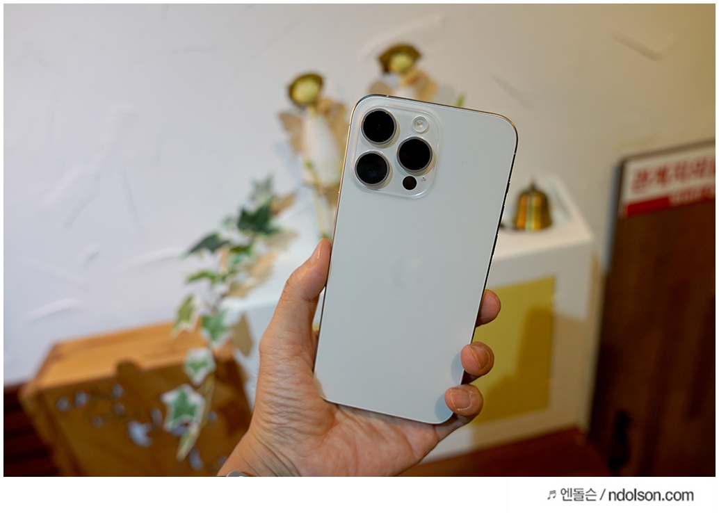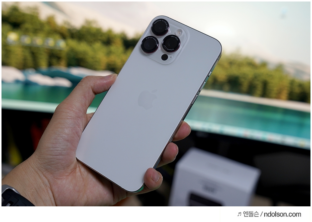 애플의 의도는 티타늄으로 견고하게 하고, 프로 라인의 큰 화면이지만, 고급라인이니깐 무게감을 줄이고자 했을 겁니다. 하지만 필자가 실사용하면서 느낀 것은 큰 차이는 없다는 것이었습니다.
