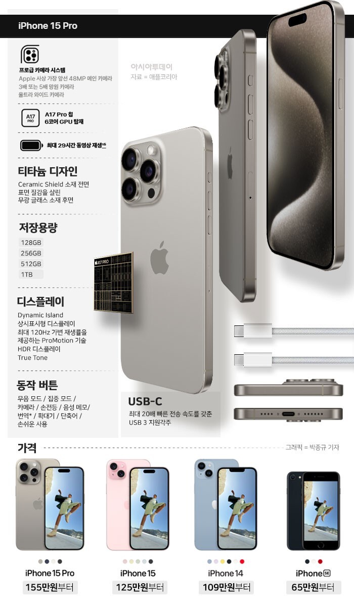 애플의 신제품 아이폰 15 프로부터 살펴보겠습니다.