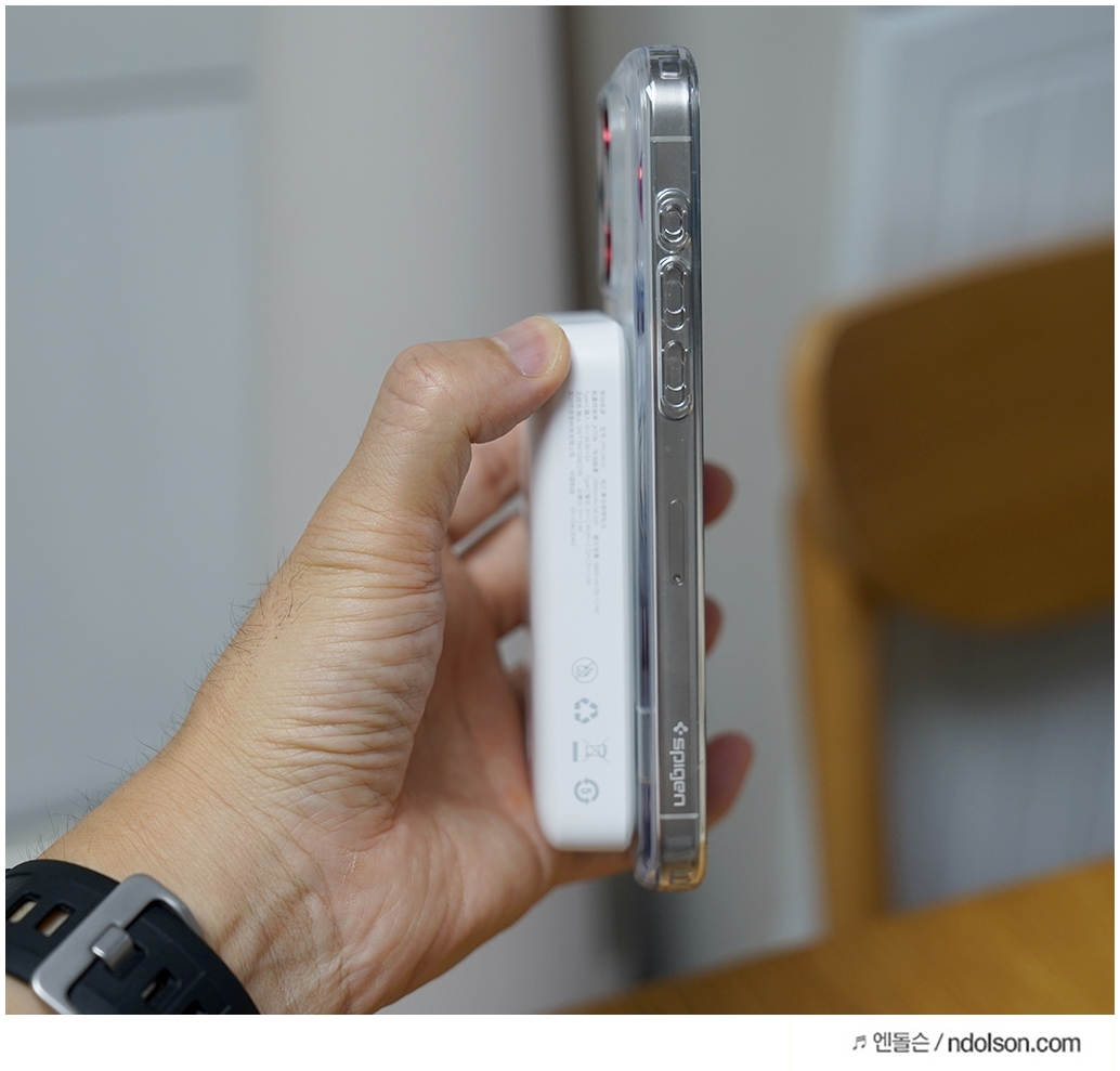그렇지만, 아이폰 15 프로도 티타늄이지만, 케이스와 맥세이프 보조배터리까지 붙인다면, 너무 무겁게 느낄 겁니다.