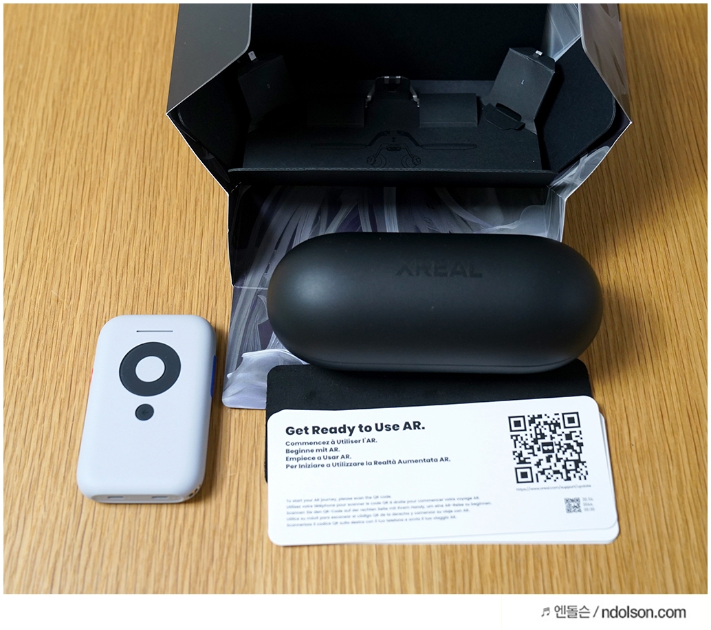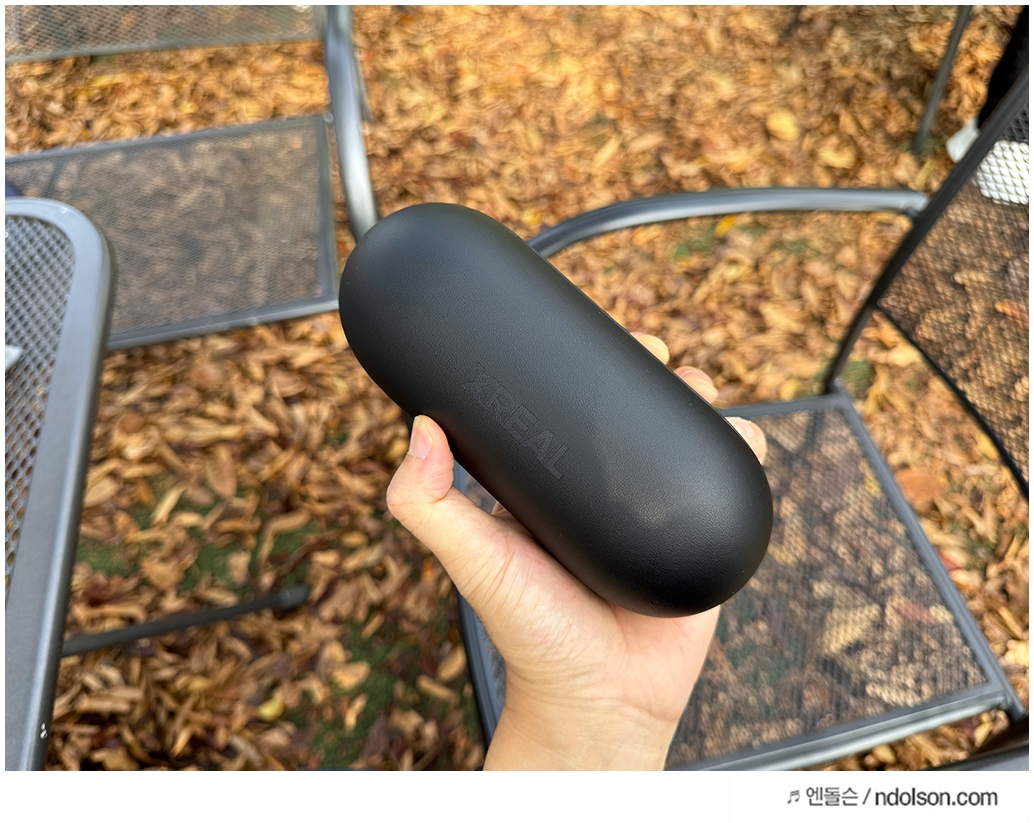 더욱 세련된 패키지의 느낌이 들었던 XREAL Air 2 를 개봉해 보았습니다. 전용 보관함이 하드형 타입으로 단단하게 바뀌었습니다. 또 선글라스 보호 덮개도 더욱 이쁘게 개선되었습니다.