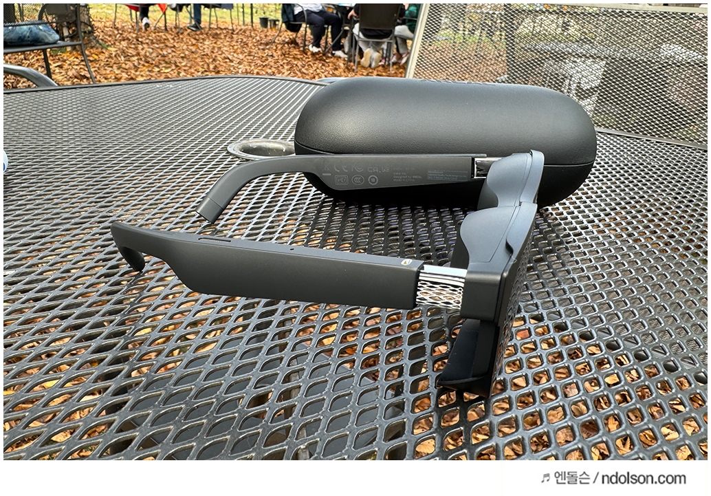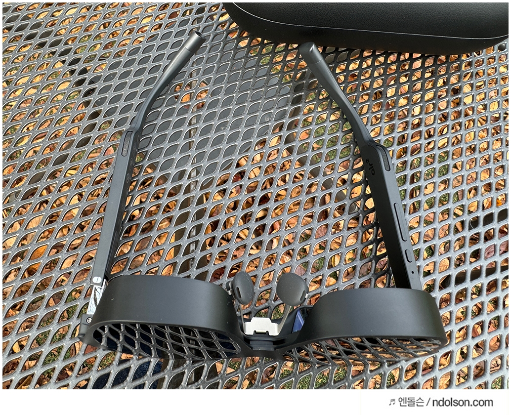 평소에 착용하고 있으면, 선글라스 안경처럼 보이지만, 최신 소니 0.55 Micro-OLED 패널이 달려 있습니다. 그리고 안경테에 영상에 몰입감을 주는 2세대 사운드 시스템 오디오가 탑재되어 있습니다.
