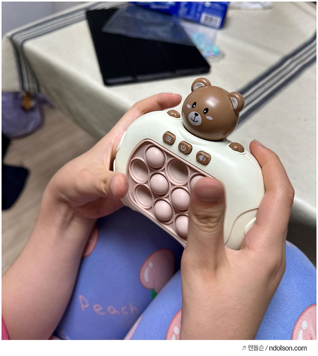 그래서 바로 딸아이도 중독되었습니다. 안 그래도 초등학생들에게 익숙한 팝잇이 유행인데, 이걸 게임기로 만들어 팝잇 게임기로 만든 사람 천재라고 생각되니다.