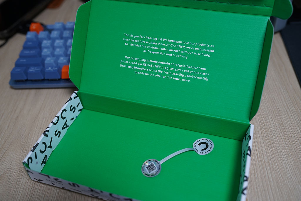 이쁜 박스에 작은 케이스가 케이스티파이 스티커를 붙이고 붙여져 있습니다.