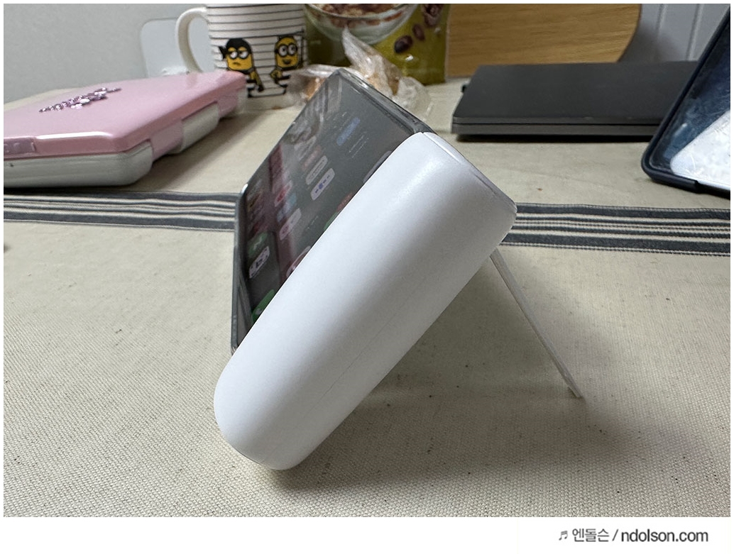 스피디 PD 20W 고속충전 5000mAh 보조배터리의 특징은 가로거치대 기능을 갖추고 있다는 점입니다.