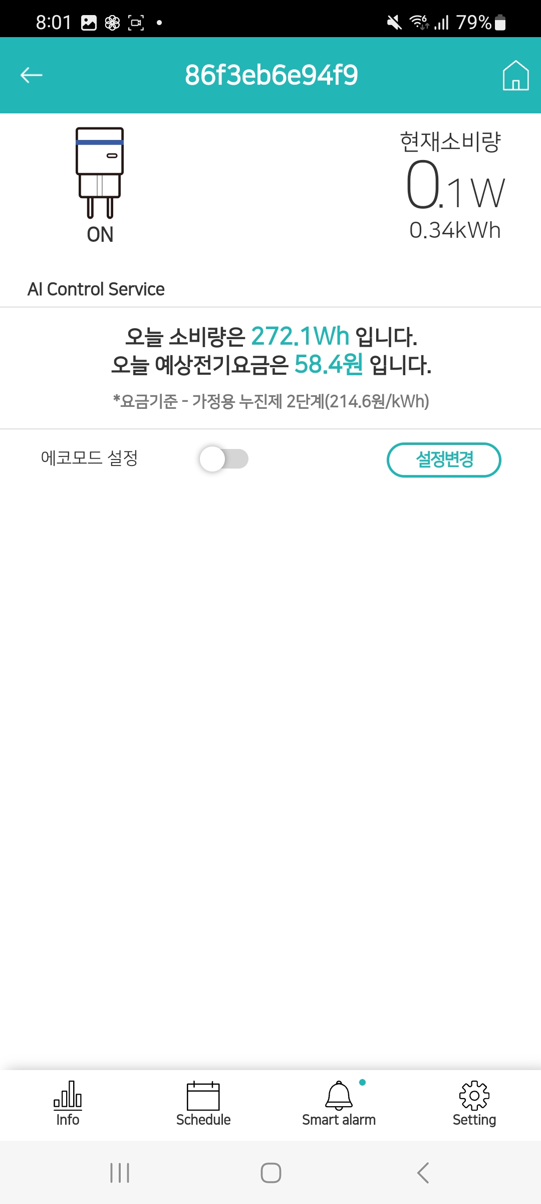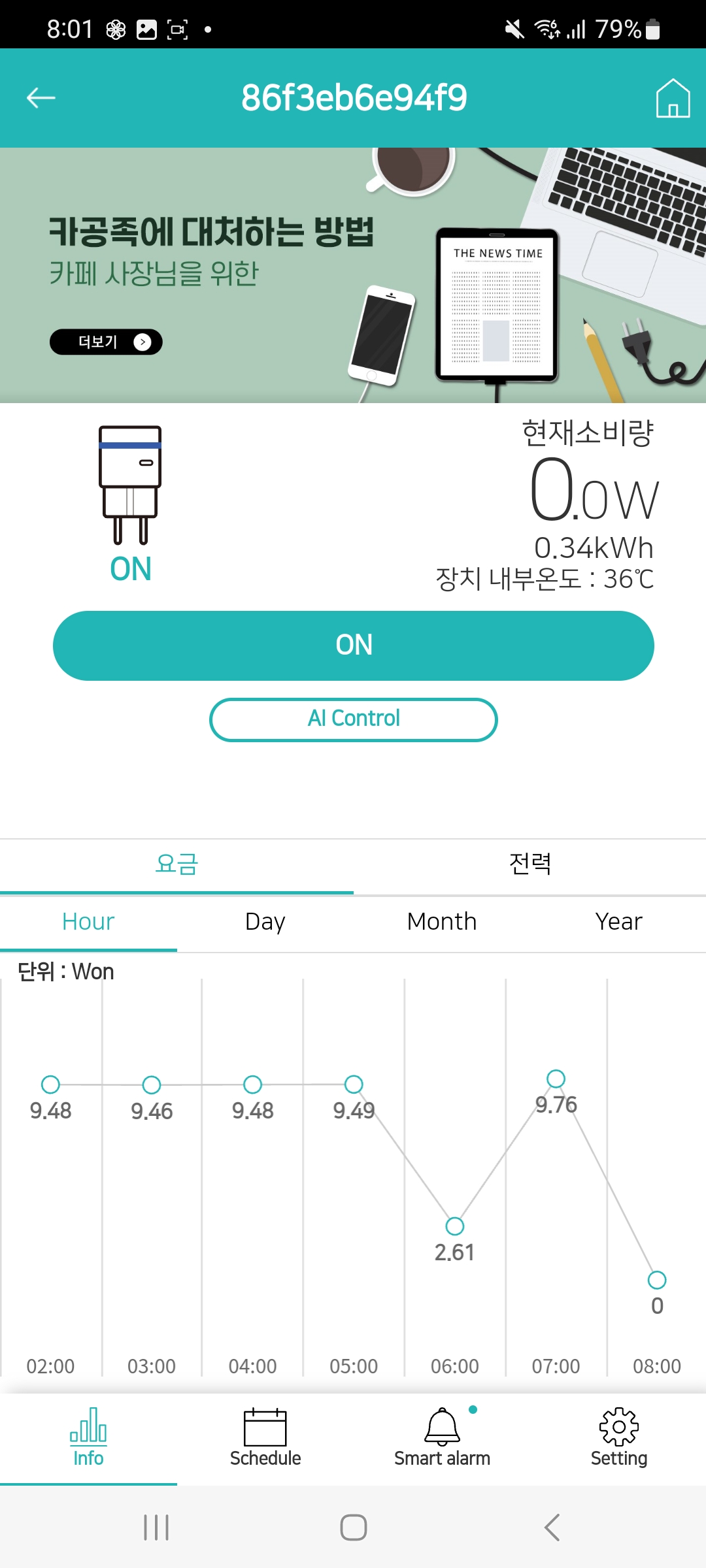 한 달에 1~2천원 수준의 전기세를 생각하시면 됩니다. 상당히 경제적이네요.