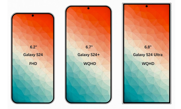 갤럭시S24의 화면 크기는 6.1인치에서 6.17인치로 조금 커진 것으로 알려져 있으며, 화면 베젤도 얇아진 것을 확인할 수 있습니다.