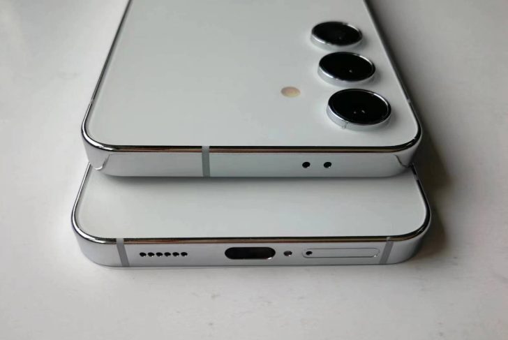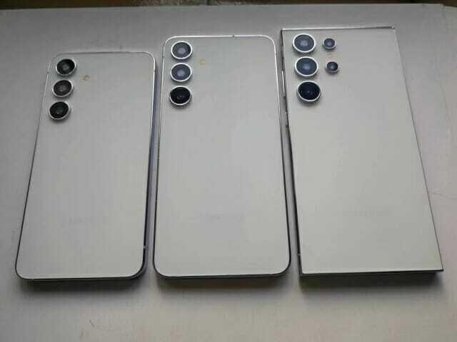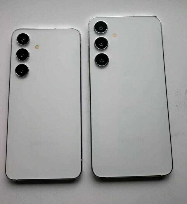 갤럭시 S24와 S24 Plus 더미 모델을 통해 곡선 모서리와 단일 스피커 컷아웃, SIM 카드 트레이 오프닝이 나타납니다. 그 외에도 두 모델 모두 후면에 삼중 카메라 설정을 확인할 수 있습니다.