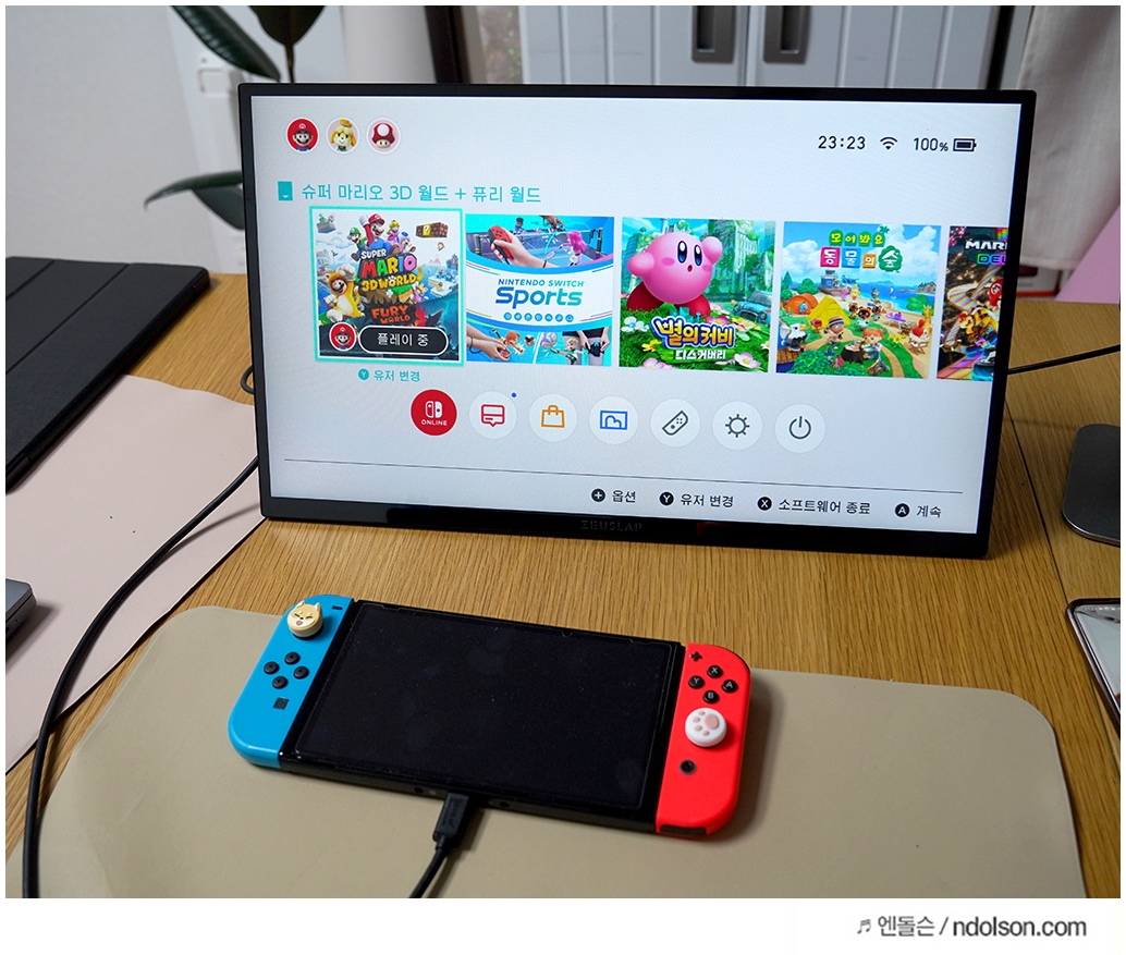 닌텐도 스위치 게임도 제우스랩 Z18T 포터블 모니터로 어디서나 즐길 수 있어 편합니다. 거실에 TV가 있지만, 닌텐도 스위치를 모니터에 연결해서 하는 게 편하거든요.