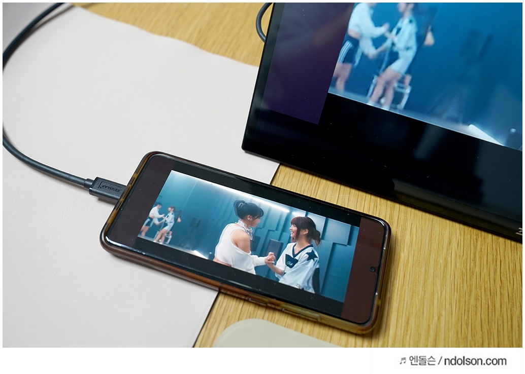 아쉬운 점은 모니터에 전원이 연결되지 않으면 스마트폰 배터리로만으로 구동은 불가능하네요.