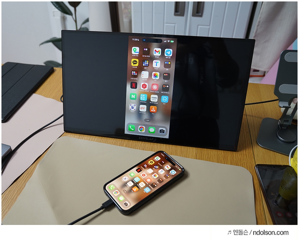 이렇게 스마트폰을 미러링 해서 제우스랩 포터블 모니터로 볼 수 있습니다.