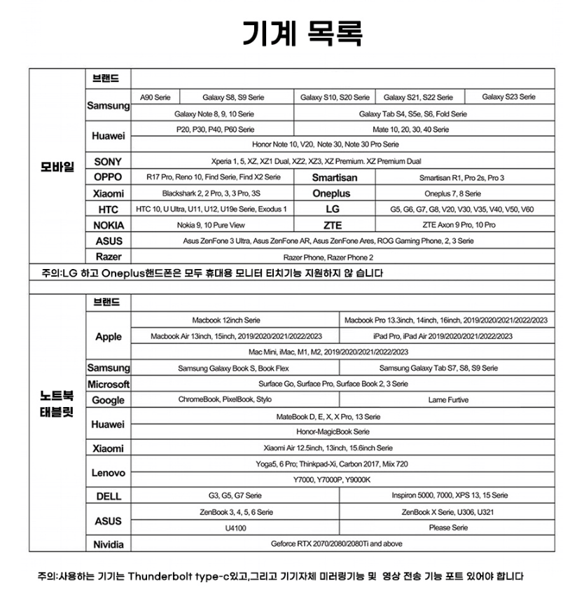HDMI로 연결되는 콘솔 게임이나 데스크탑에 연결할 때 터치 기능을 활용할 수 없기 때문에 폰을 들고 하거나 닌텐도 스위치의 조이콘을 들고 해야 합니다.