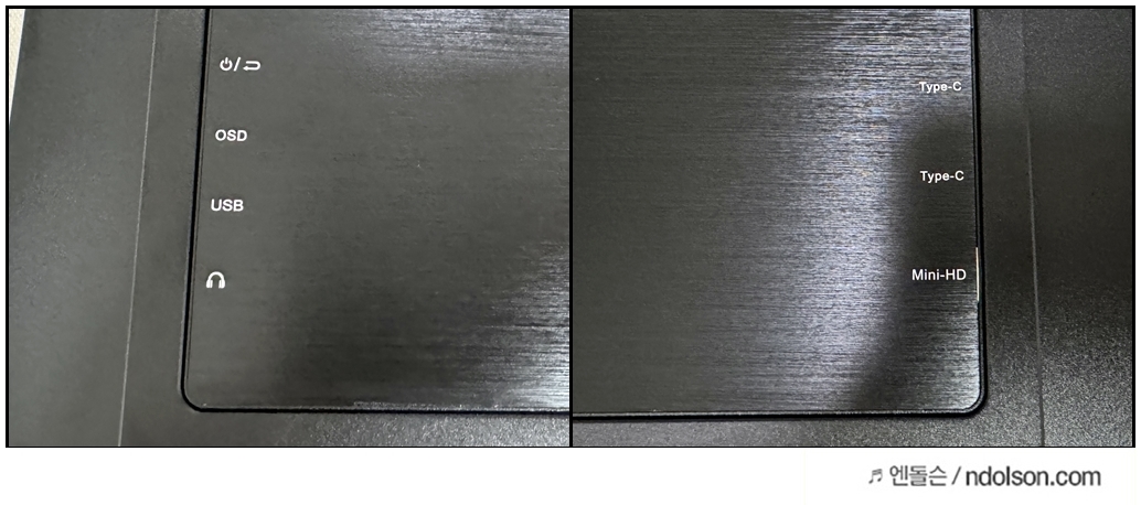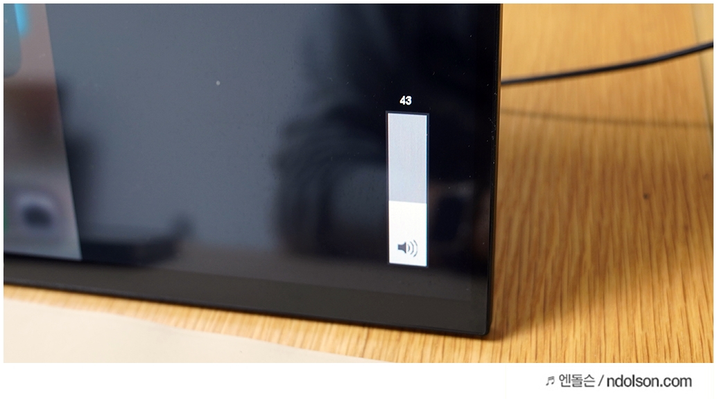 포터블 모니터의 볼륨을 조절하기 위해서는 후면의 OSD를 위/아래로 눌러서 사운드 음량을 조절할 수 있습니다.