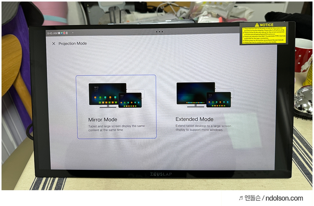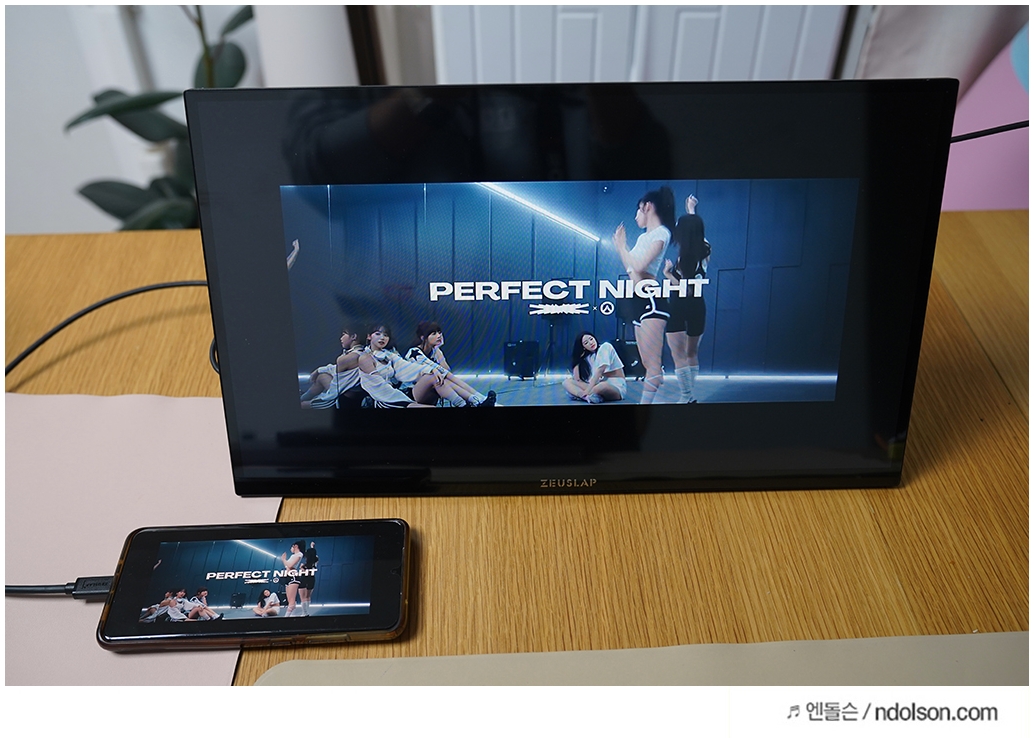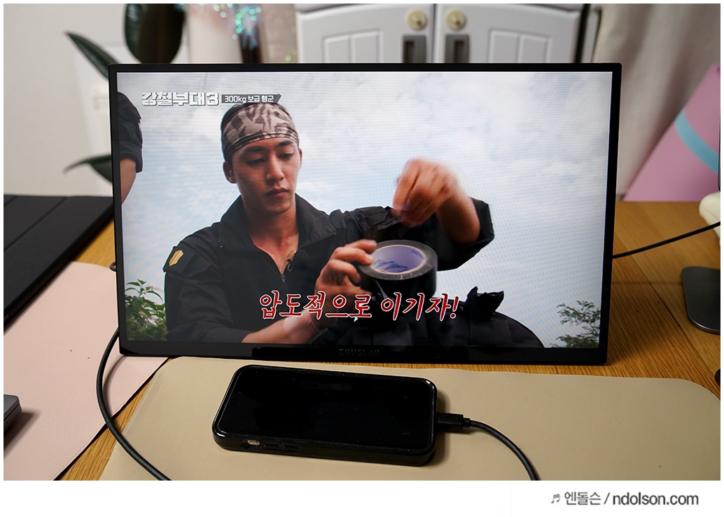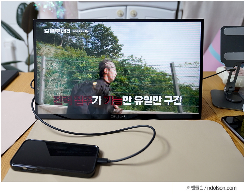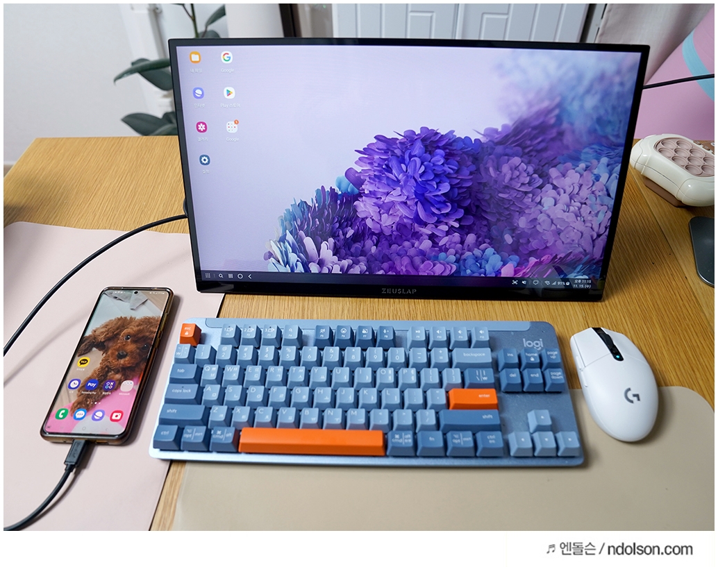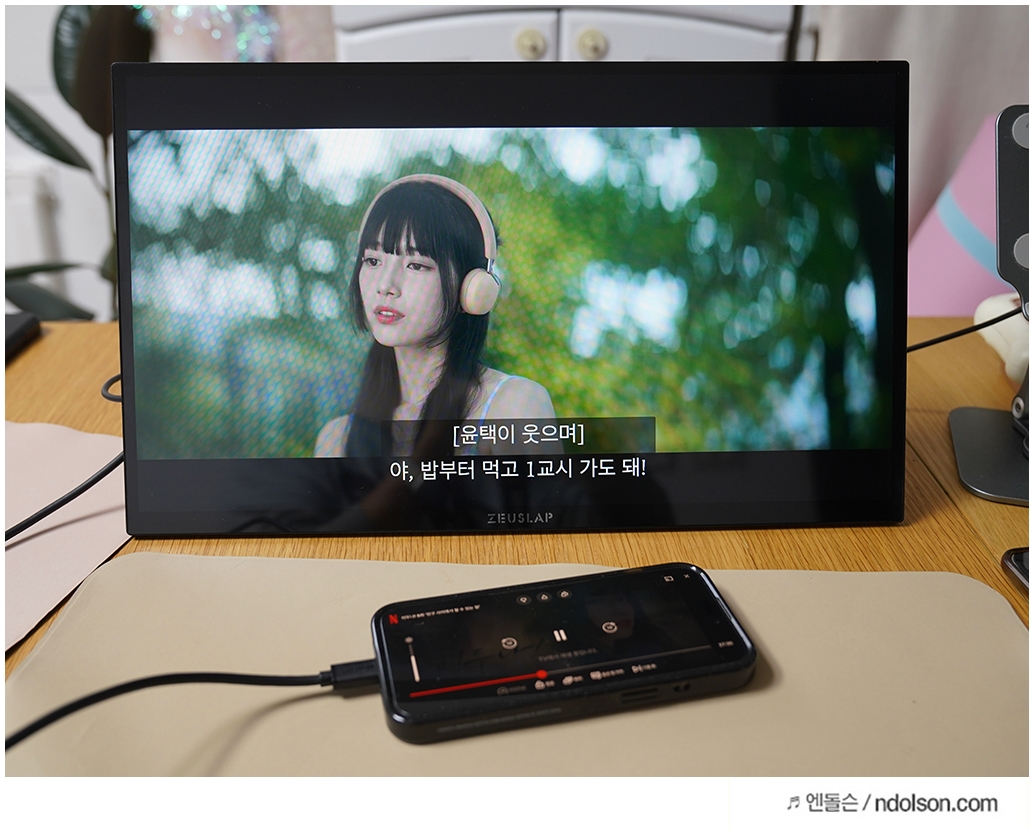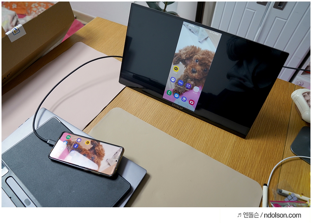 이렇게 스마트폰을 미러링 해서 제우스랩 포터블 모니터로 볼 수 있습니다.