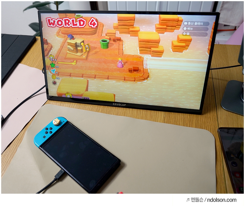 닌텐도 스위치 게임도 제우스랩 Z18T 포터블 모니터로 어디서나 즐길 수 있어 편합니다. 거실에 TV가 있지만, 닌텐도 스위치를 모니터에 연결해서 하는 게 편하거든요.