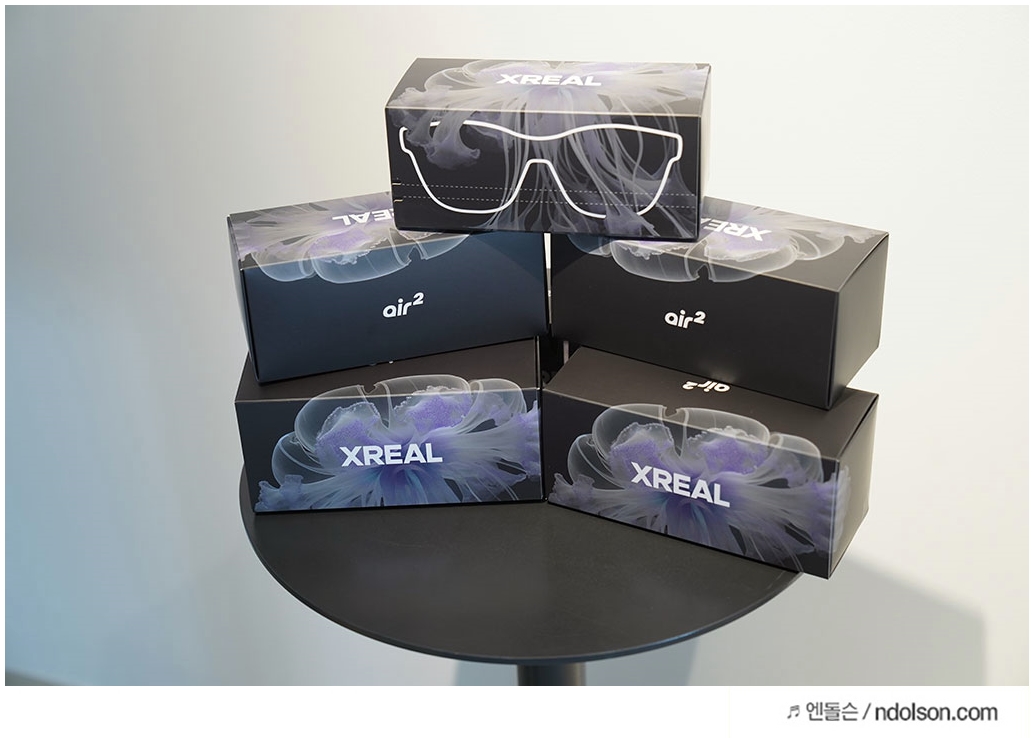정말 많은 사람들이 직접 엑스리얼 에어 2 및 프로 제품을 체험할 수 있게 제공받고, 직접 영상을 보거나 체험을 해볼 수 있는 기회를 가졌습니다. 제가 제공받은 엑스리얼 에어 2 입니다.