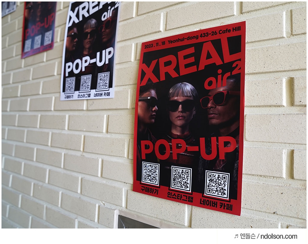 엑스리얼 XREAL 에어2 프로와 엑스리얼에어 그리고 다양한 색상 스티커까지 직접 볼 수 있는 오프라인 팝업 행사가 있어 다녀왔습니다. 정말 아침 일찍, 기대감을 안고 연희동의 아늑한 까페힐 카페로 향했습니다. 오늘의 목적은 바로 엑스리얼의 최신작 엑스리얼 에어2와 엑스리얼 에어 2 프로를 체험하기 위해서입니다.