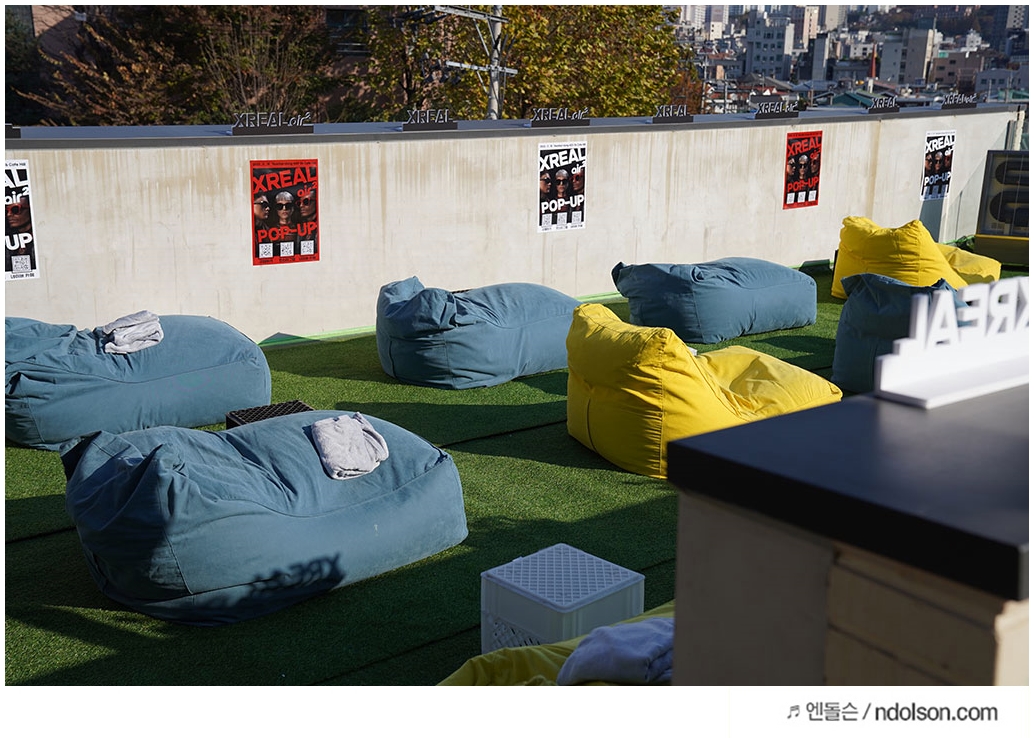 행사장 루프탑에서는 누워서 체험할 수 있는 빈백이 여러 개 마련되어 있었습니다. 정말 이제는 스마트폰과 태블릿을 들고 보는 사람은 바보가 된 것 같네요.