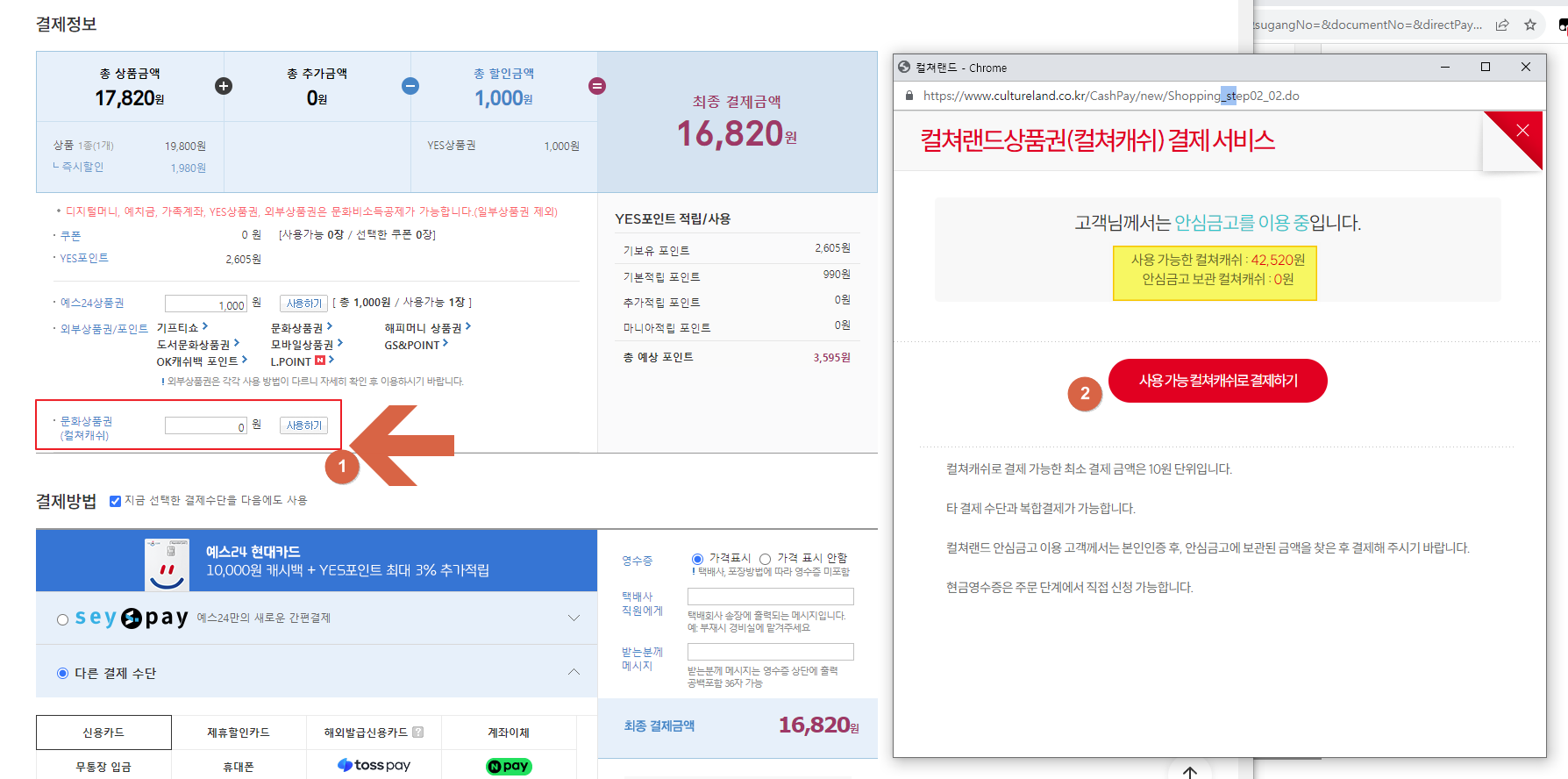 컬쳐랜드 충전된 컬쳐캐쉬로 예스24 도서 책 구매하는 방법
