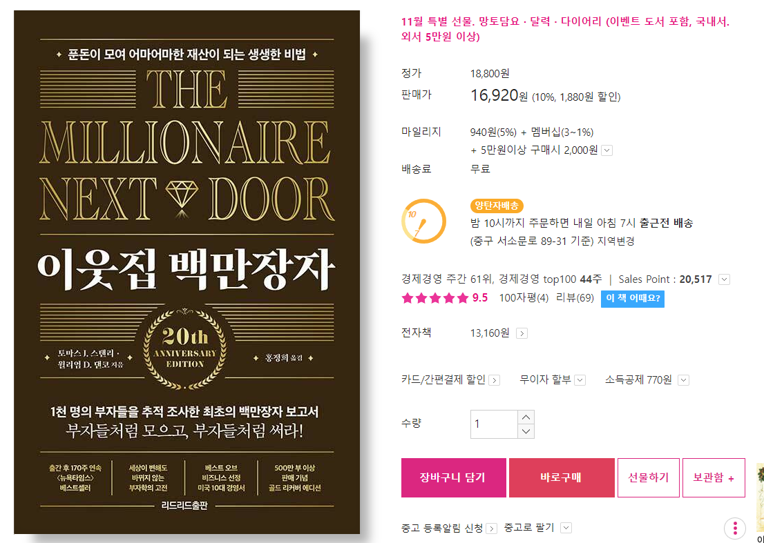 이웃집 백만장자 (쿠팡 새벽 로켓배송) : https://link.coupang.com/a/bgK9sN