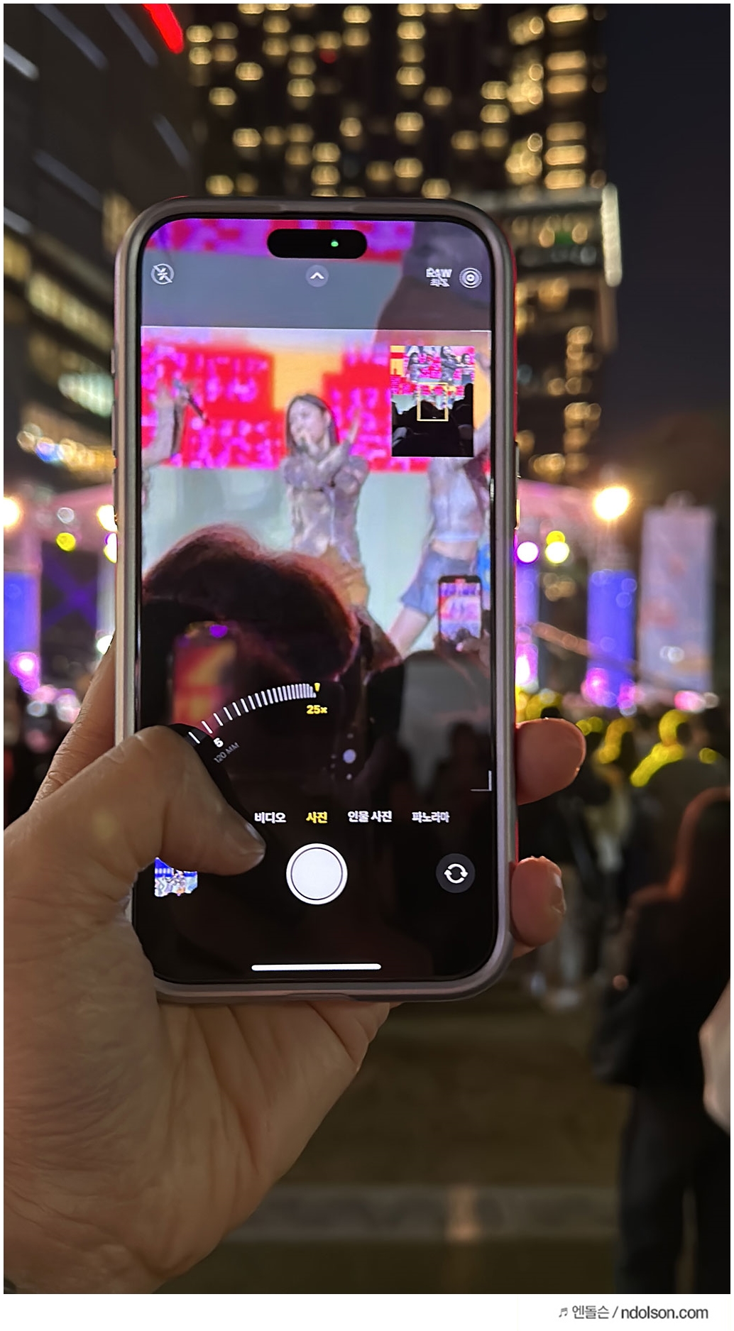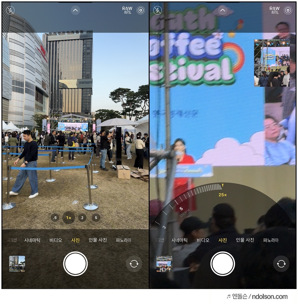 아이폰15의 화각과 망원 5배, 25배줌의 차이