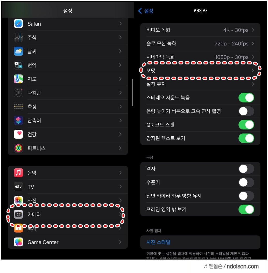 아이폰 15 카메라 설정 유지와 포맷 설정하는 방법