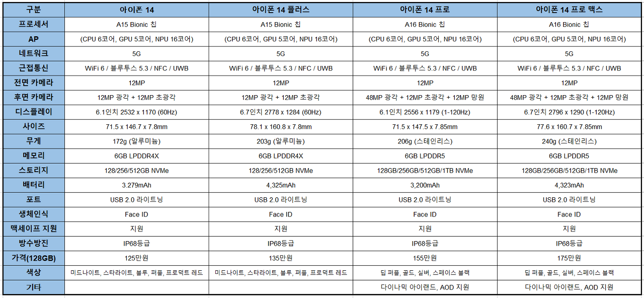 아이폰 14와 아이폰 15 스펙비교하면 성능 차이가 나타납니다.