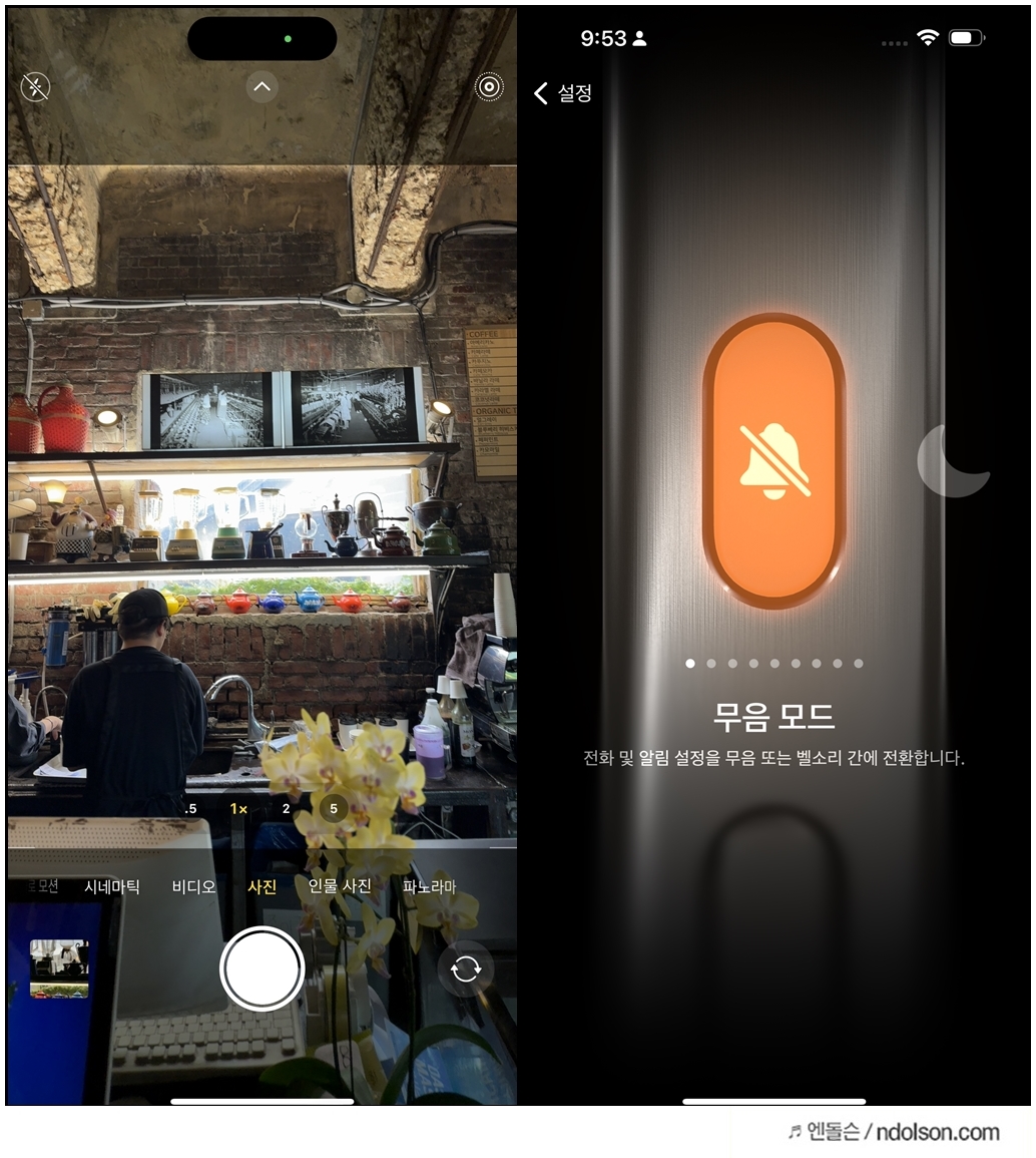 뮤트 스위치 대신 프로그래밍 가능한 액션 버튼 도입 되었습니다. 기존의 뮤트 스위치가 프로그래밍 가능한 액션 버튼으로 바뀌어 빠르게 앱 실행을 할 수 있어 좋습니다.