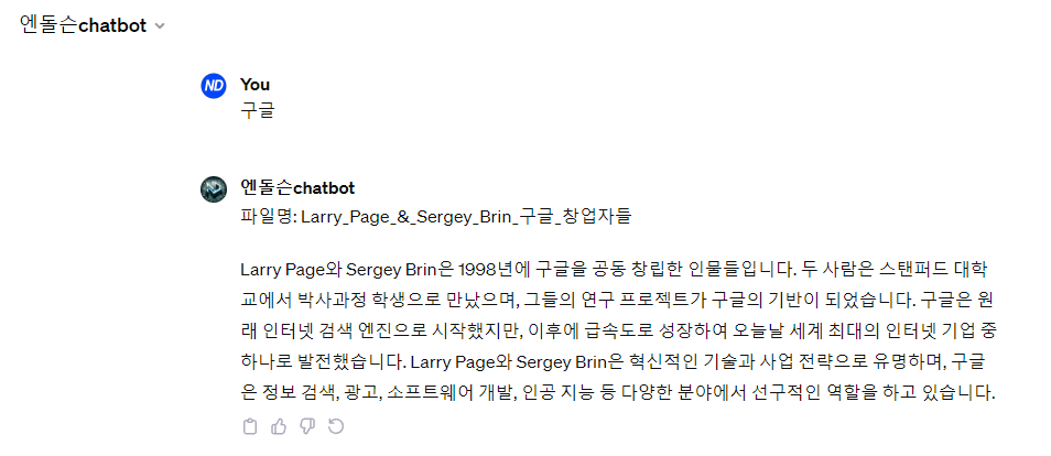 드디어 나만의 챗봇이 완성되었습니다.
