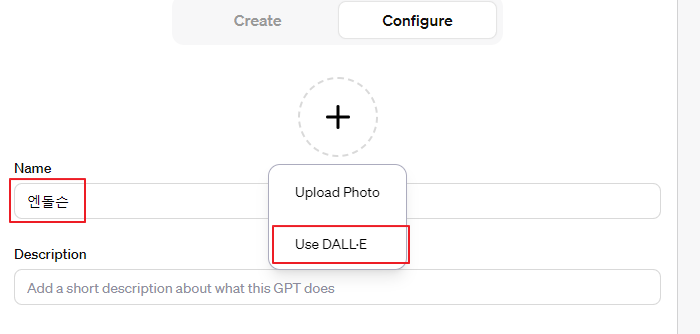 3. 이름과 프로필 이미지 설정: GPT에 적절한 이름을 부여하고, DALL·E를 사용하여 관련 이미지를 생성할 수 있습니다.