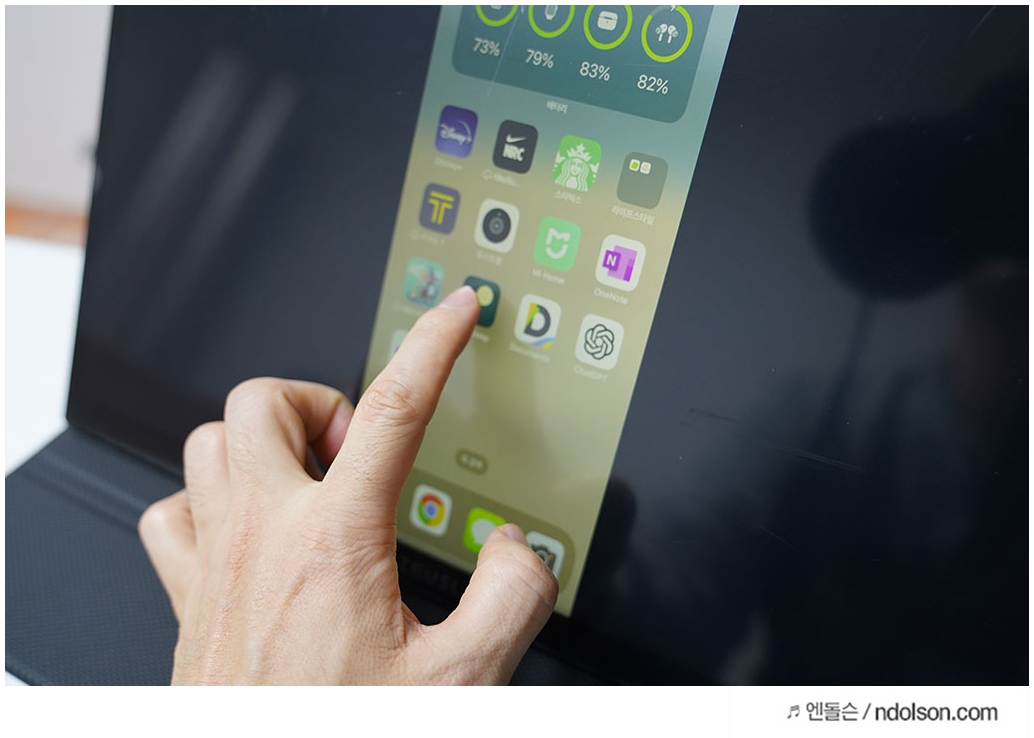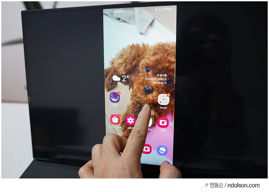 갤럭시 S20 울트라를 연결하여 터치해 보니, 모니터가 터치 인식을 합니다.