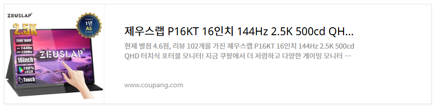 기존에 구매한 포터블 모니터는 터치가 제외된 모델이라 상대적으로 저렴하고 좋았지만, 태블릿처럼 쓰기는 한계가 있었습니다. 그래서 터치까지 지원하는 제우스랩 Z16 MAX Pro 제품을 쓰게 되었습니다.
