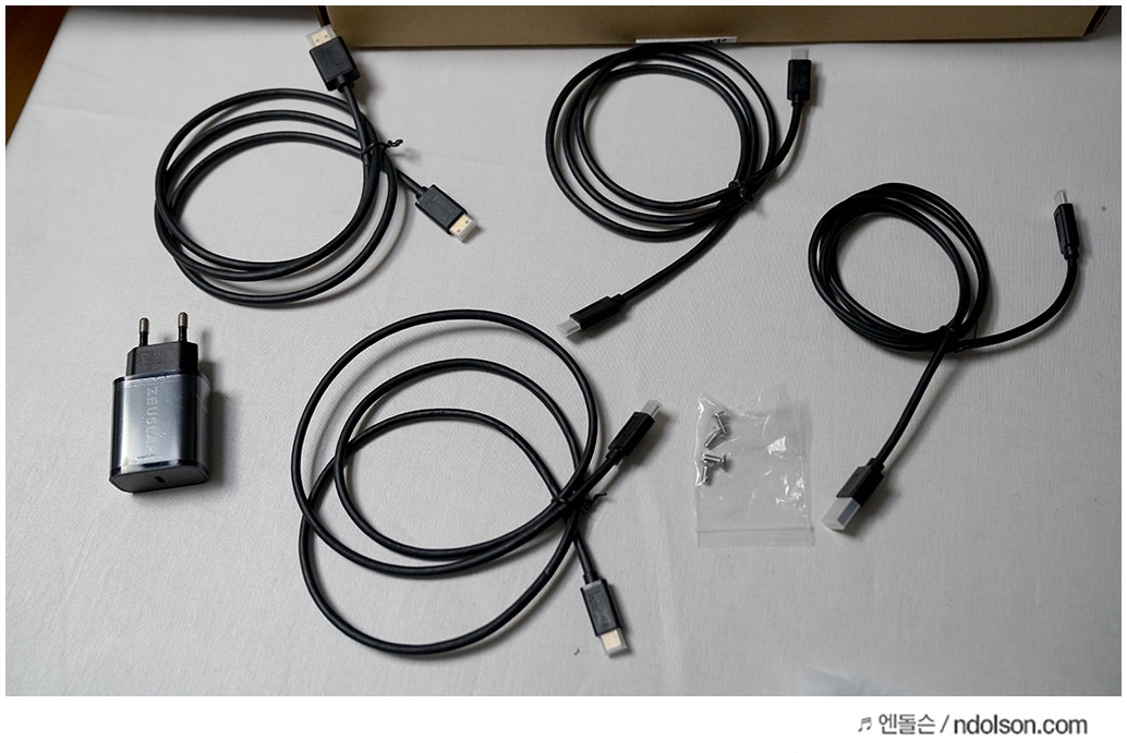 제우스랩 Z16 MAX Pro 구성품에는 꽤나 많은 USB-C 단자 케이블과 Mini-Hdmi 케이블을 지원해 줍니다.