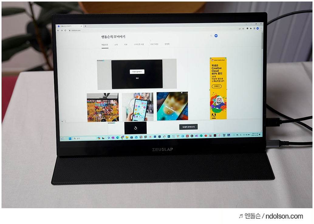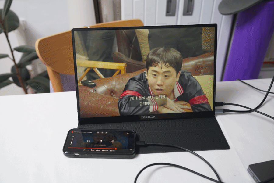 컴퓨터는 켜기 싫고, TV는 싫을 때 거실에서 제우스랩 Z16 MAX Pro 모니터로 재생하기 좋습니다.