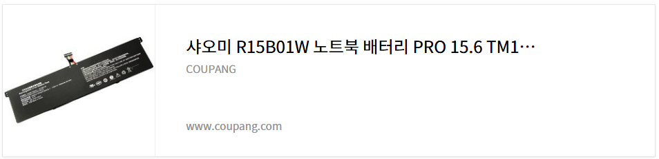 저는 알리익스프레스와 쿠팡 등 모두 샤오미 배터리를 구매하려고 알아보았습니다. 샤오미 노트북 프로용 배터리 모델명은 R15B01W 입니다.