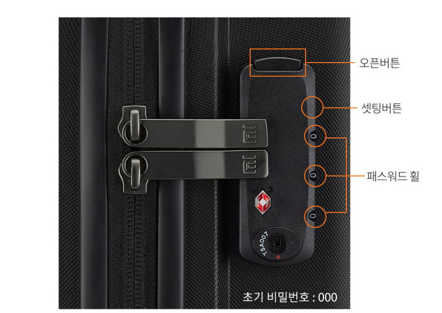 특히 TSA 잠금장치가 탑재되어 있어 해외여행 시 보안에 대한 걱정을 덜 수 있었습니다. 잠금장치는 매우 안정적으로 작동하며, 초기 패스워드는 '000'으로 설정되어 있어 사용하기 편리했습니다.