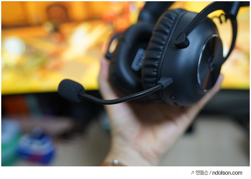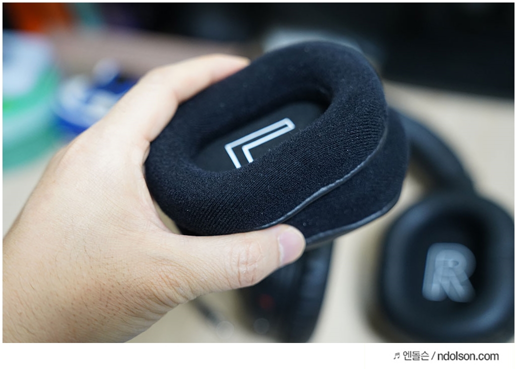 제품을 손에 들어보면, 헤드셋의 품질이 느껴집니다. 알루미늄과 스틸 프레임이 주는 견고함과 함께, 헤드밴드의 부드러운 인조 가죽 쿠션이 장시간 사용해도 편안함을 제공합니다.