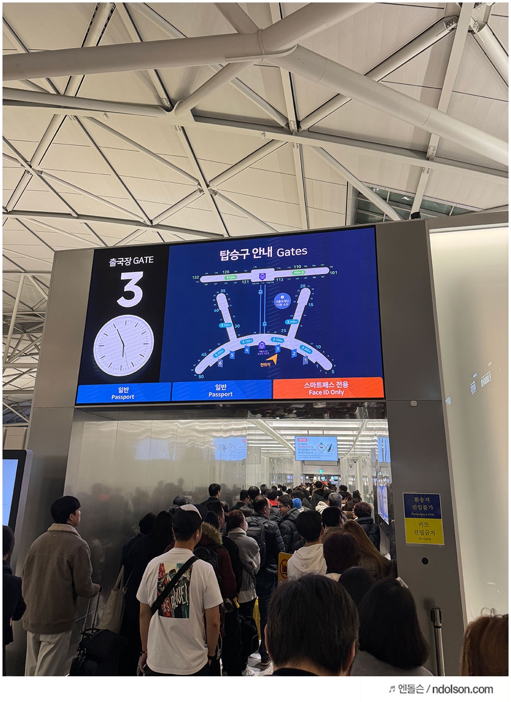 출국할 때 사람들 인천 공항에 많잖아요?  그런데  스마트패스 앱을 사용하면, 여권이나 탑승권을 제시할 필요 없이 여행자의 얼굴 정보를 사용하여 신분을 확인합니다.