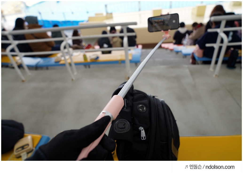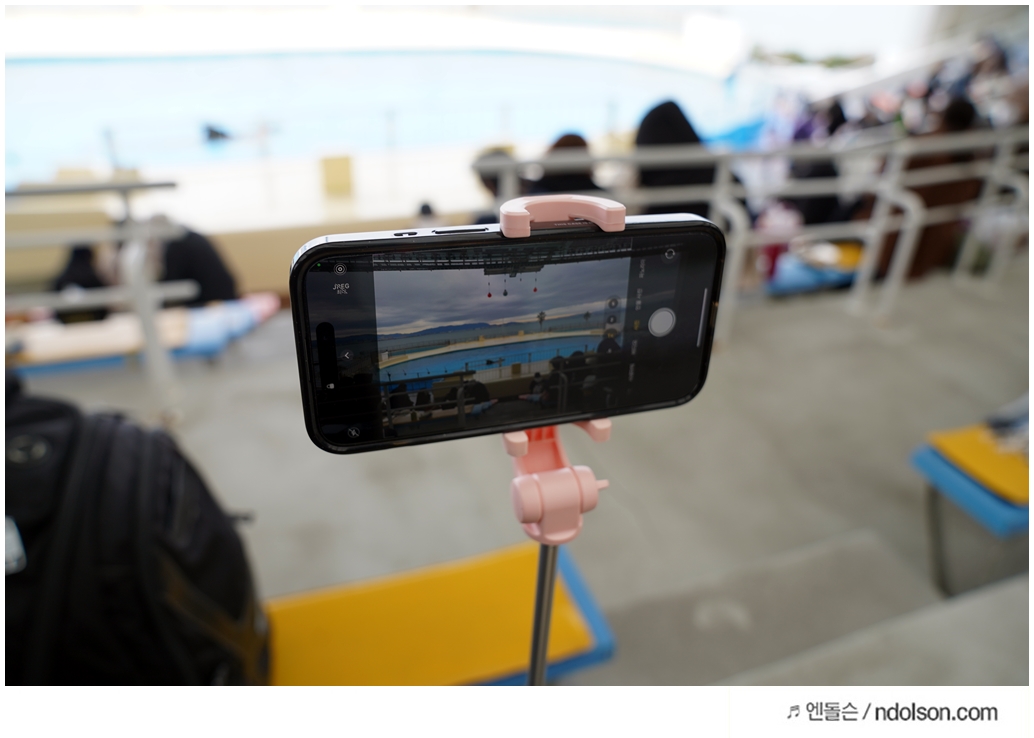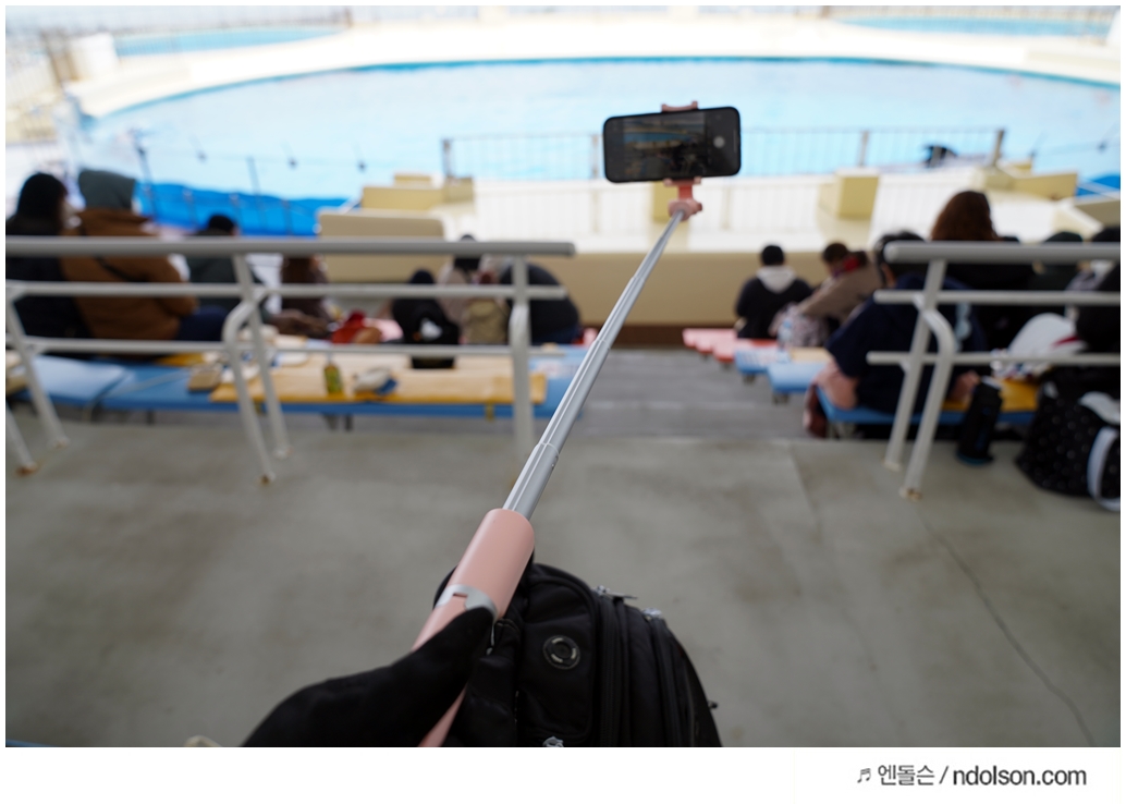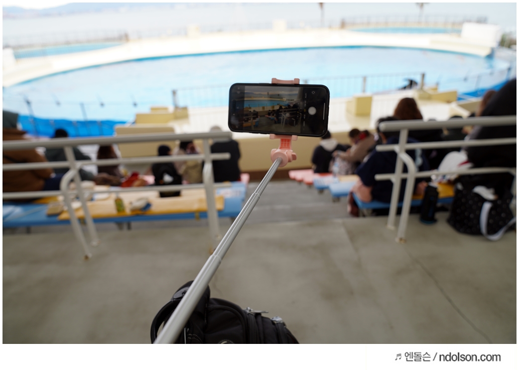 후쿠오카 수족관에서 돌고래를 촬영할 때 슈피겐 셀카봉의 도움이 컸습니다. 날씨가 추워서 장시간에 걸친 스마트폰 촬영이 필요했는데, 슈피겐 삼각대 기능 덕분에 피로함 없이 안정적으로 영상을 담을 수 있었죠.