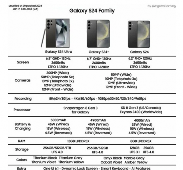 - 언팩: 2024년 1월 18일 새벽 3시 (한국 시간), 미국 캘리포니아주 새너제이에서 개최.