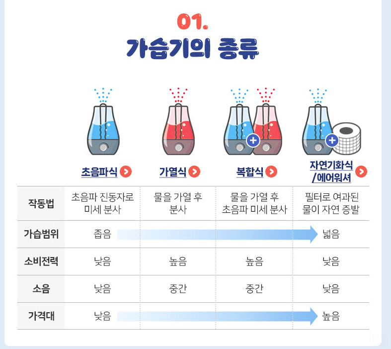 가습기 선택 가이드! 초음파, 가열식, 자연기화식 가습기의 장단점