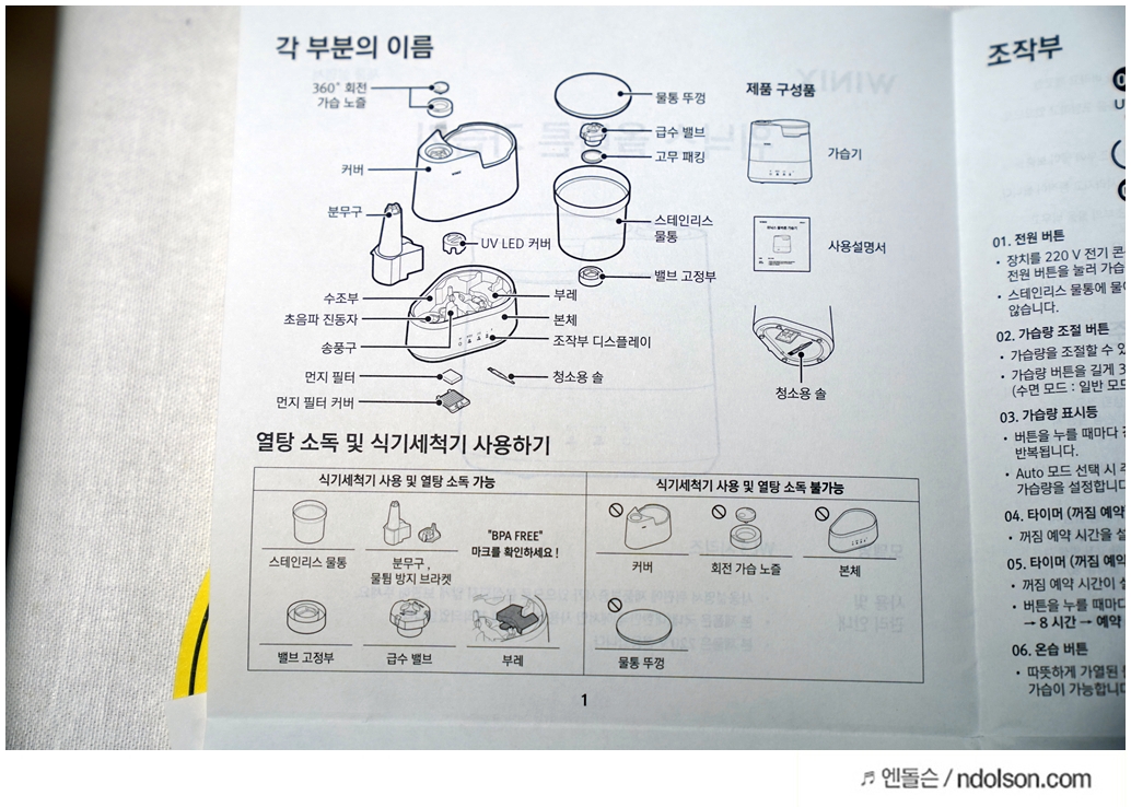 식기세척기에 넣고 가습기통을 청소해도 됩니다.
