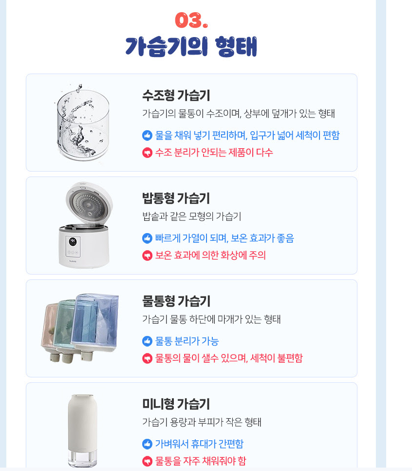 이번 포스팅에서는 가습기를 고를 때 고려해야 할 주요 가습 방식과 그들의 장단점에 대해서도 설명하려고 합니다.