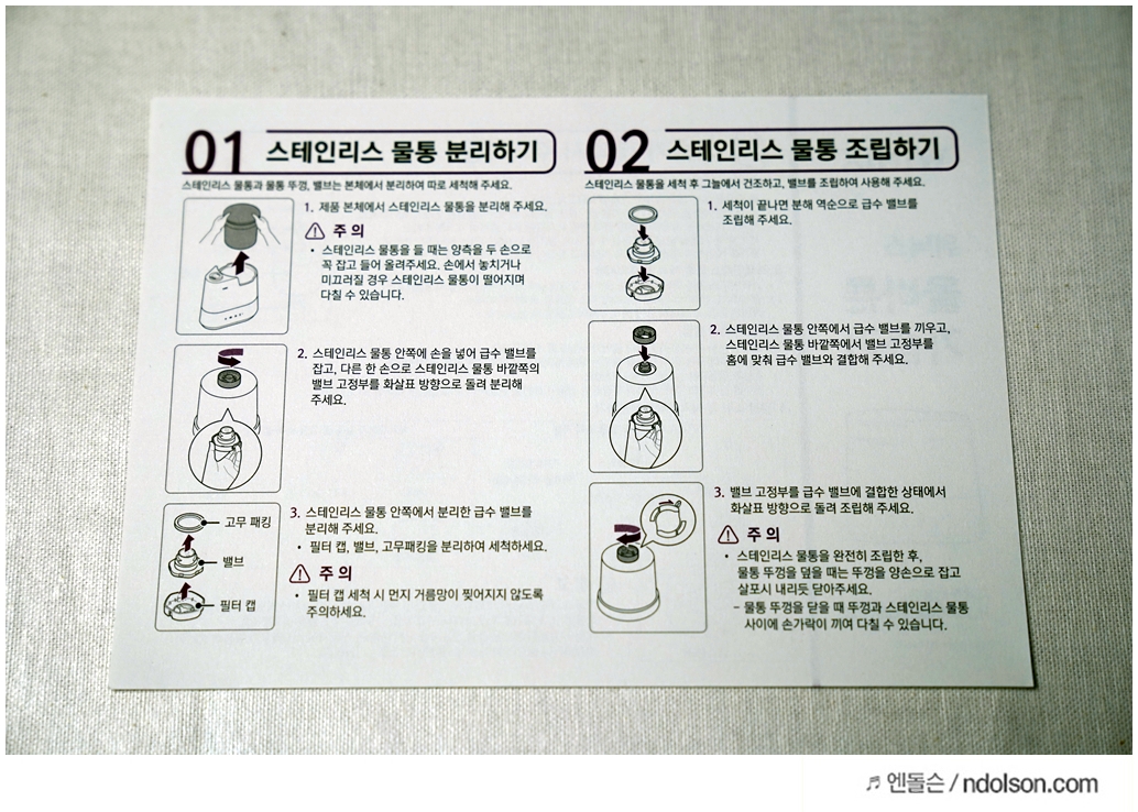 스테인리스 가습기라서 좋고, 필터부터 거의 모든 부분이 분리가 됩니다.