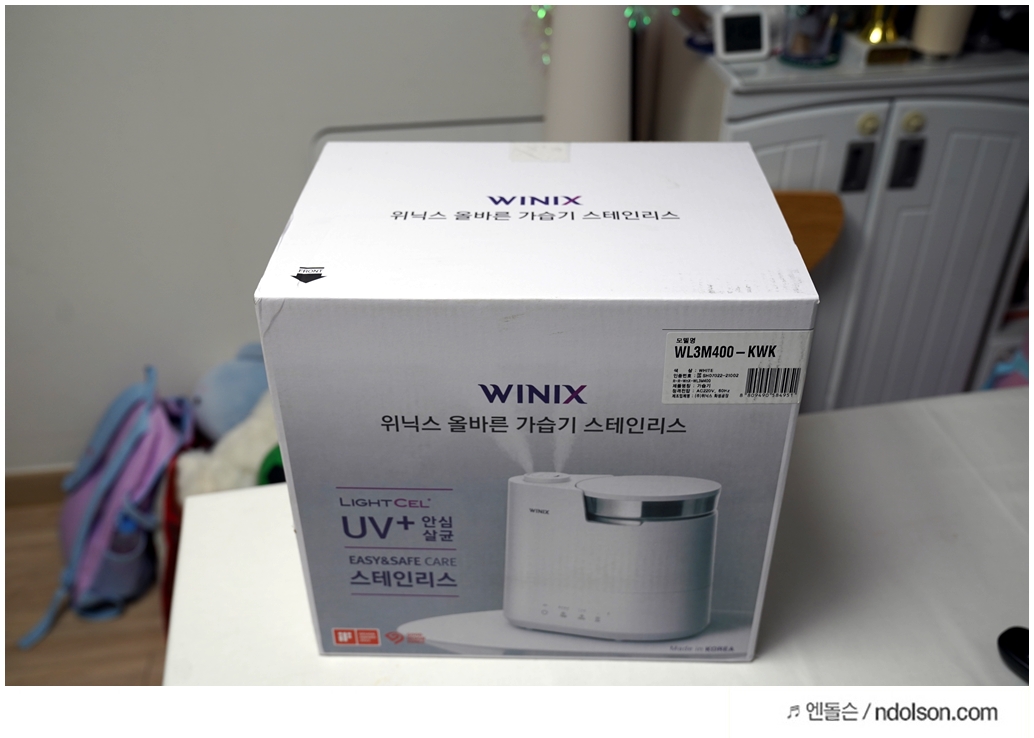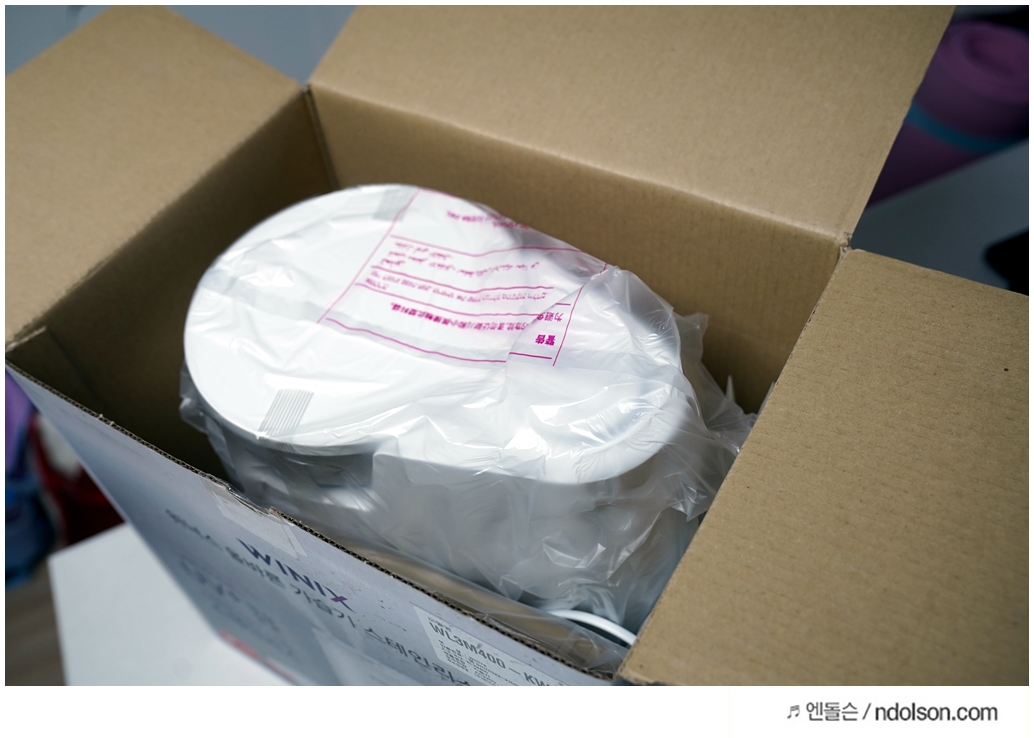 위닉스 복합식 가습기를 구매하고 바로 받았습니다. 확실히 화이트 제품이라 깔끔합니다.
