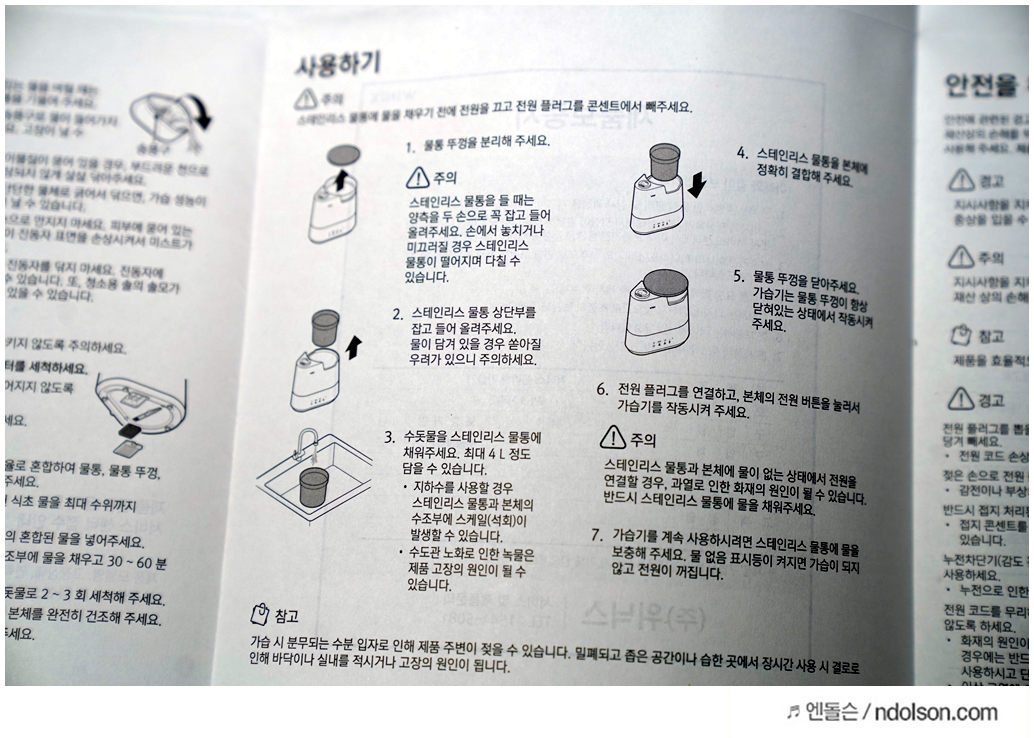 하지만 생각해보니, 가열식이라 뜨거운 김으로 아이들이 다칠 수도 있다는 걸 생각하면 저온 가열식이라 안전하다고 생각되기도 합니다. 또 초음파, 가열식이 결합된 복합식 가습기이며 스테인리스 가습기물통이라 청결하고 안전합니다.