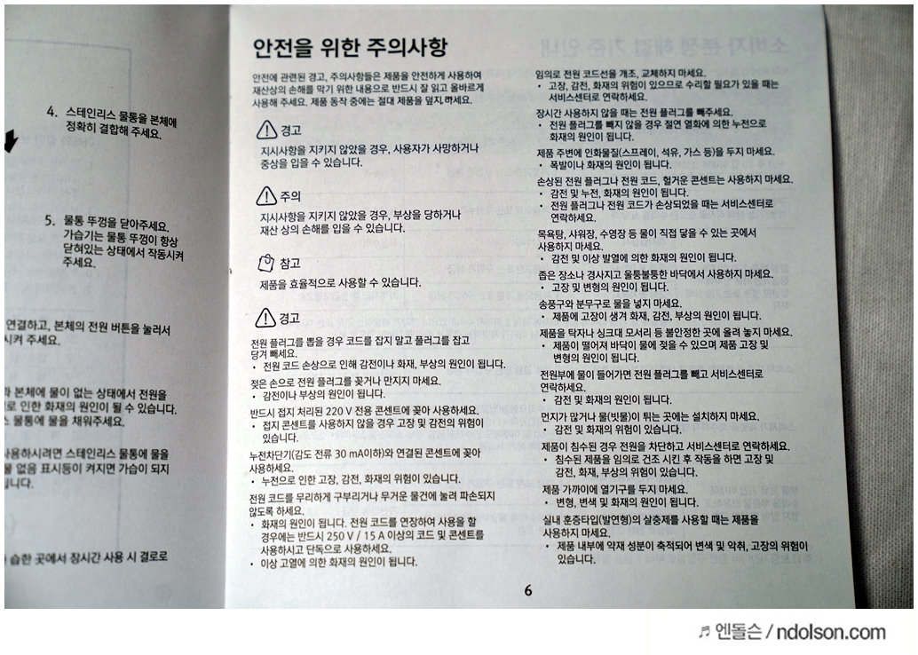 * 스테인리스 물통을 적용하여 위생적으로 사용할 수 있다.