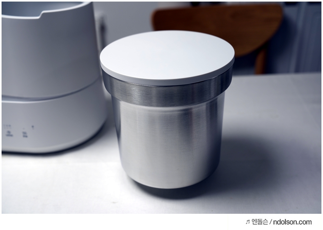 시키는 대로 스테인레스 통을 식용유와 키친타월로 닦아 주었습니다. 요즘은 이렇게까지 안 해도 연마제가 없다고 하긴 합니다.