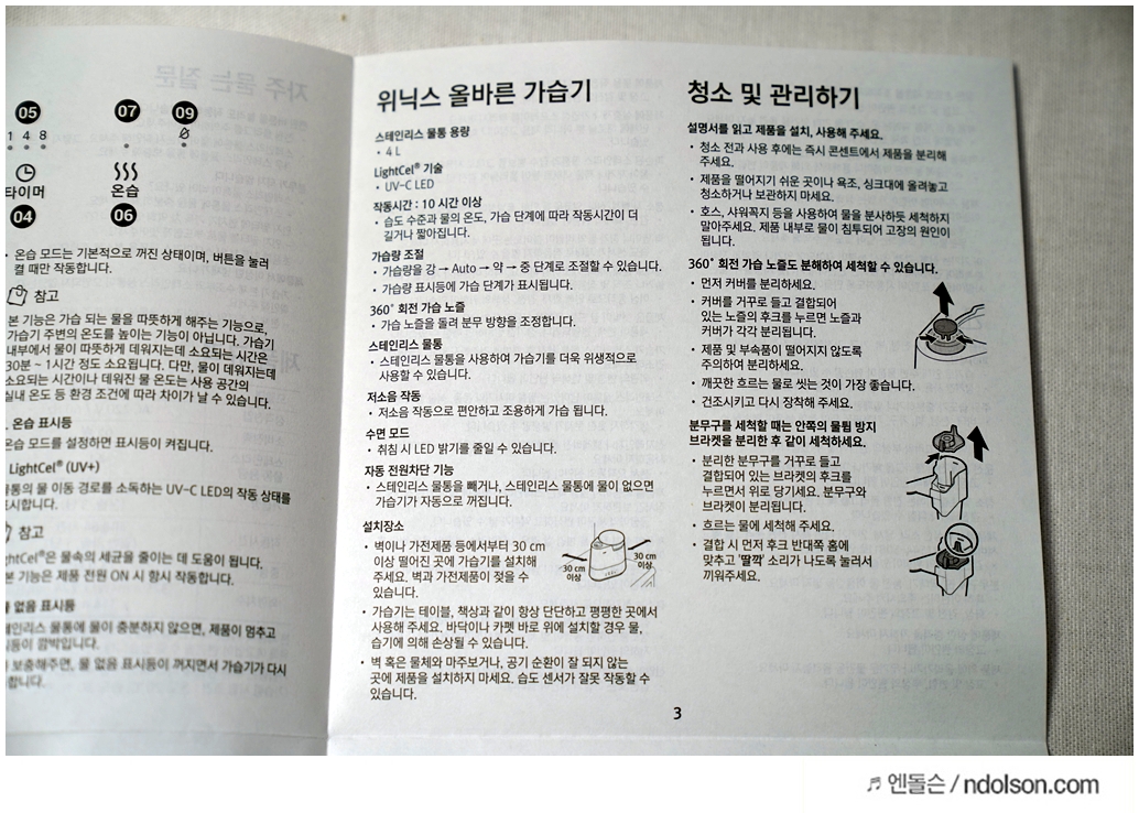 분리가 잘되는 가습기라 청소할 때 세척하기는 편할 것 같습니다.