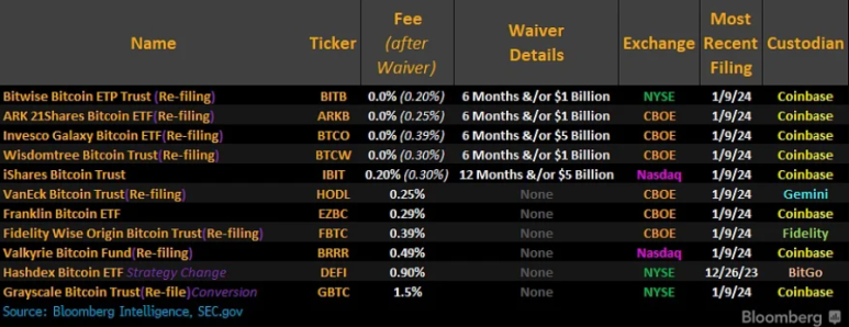 미 증권거래소에서 11개 현물 비트코인 ETF 승인되면서 11일(목요일)부터 비트코인 ETF 거래 시작되었습니다.