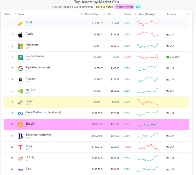 비트코인은 현재 전 세계 자산 중에서 버크셔해서웨이보다 높은 시가총액을 가지고 있습니다. 상위 10위 안에 위치해 있습니다. 이러한 현상은 암호화폐가 단순한 투기 대상을 넘어서 제도권 금융에서 인정받는 자산으로 자리 잡고 있음을 보여줍니다.